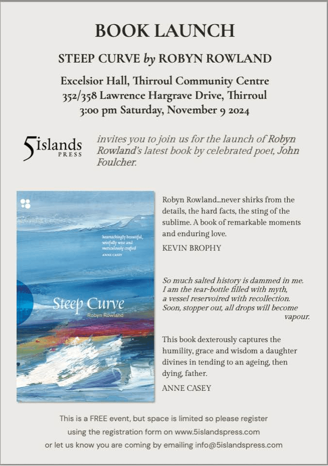 Sislands invites you to join us for the launch of Robyn Rowland’s latest book by celebrated poet, John Foulcher.